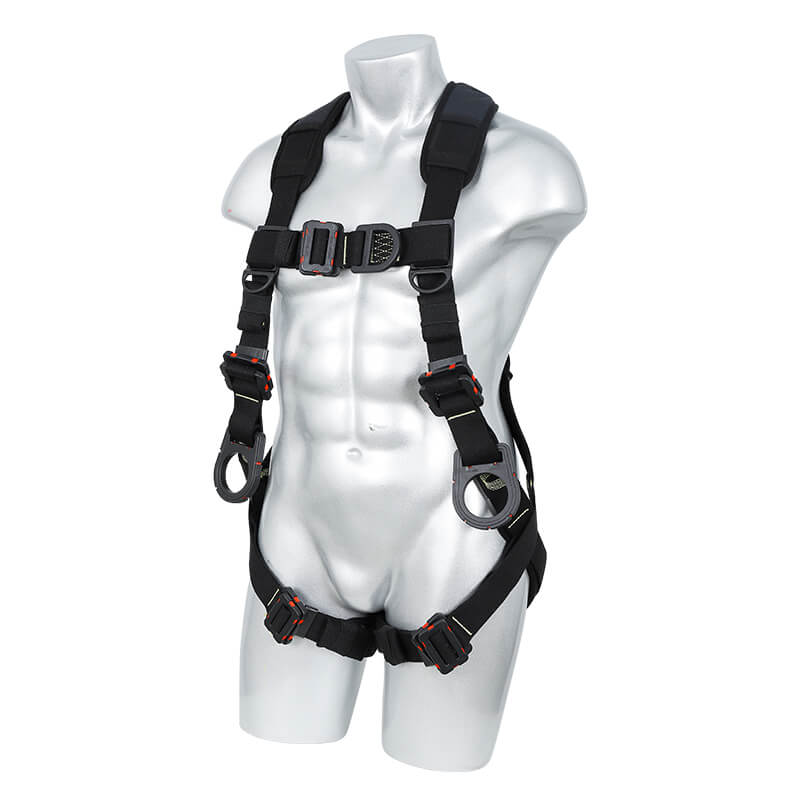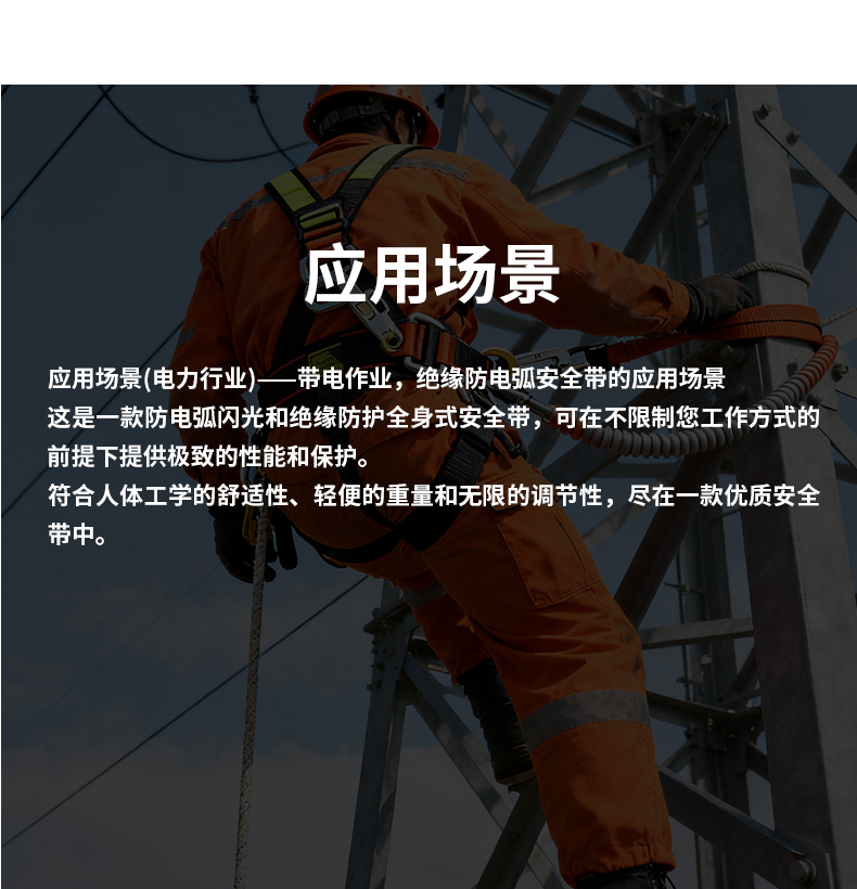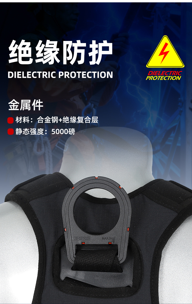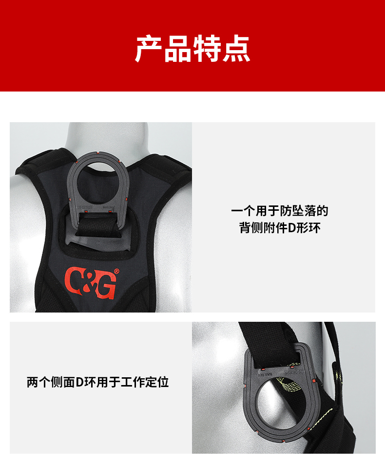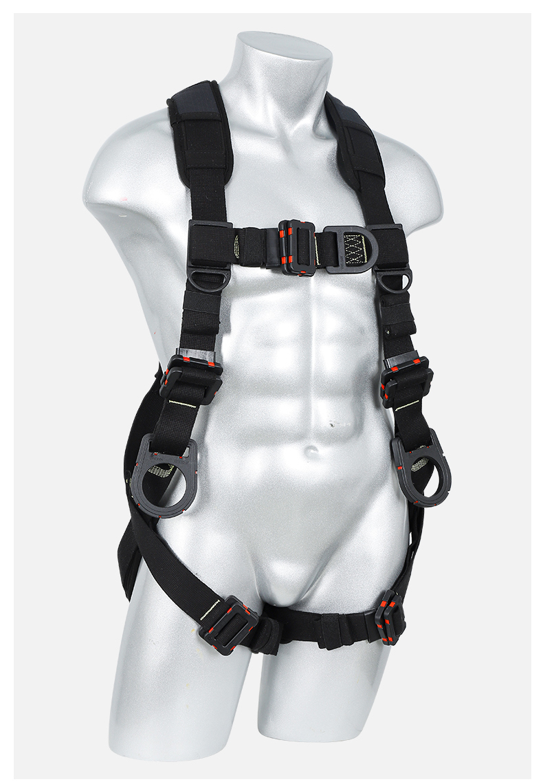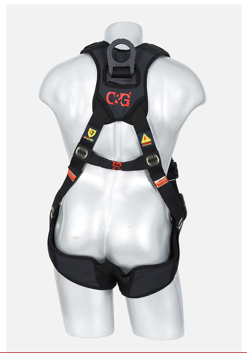1、4個掛點:后背1個,胸前1個,腰部2個,2、5個調節點:腹,胸,肩3、織帶材質:芳綸+合成纖維4、五金件:合金鋼+絕緣復合層5、調節扣:口日字6、帶護腰7、標準:GB6095-20218、適用:區域限制、