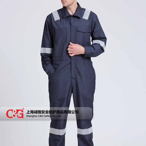 Nomex藏青色連體服采用杜邦Nomex高級阻燃棉面料生產,吸濕排汗、透氣性好、適合夏季穿用,杜邦Nomex面料本質阻燃,耐高溫、熱防護性能突出,同時具有優異的耐磨性、抗靜電、經久耐用。